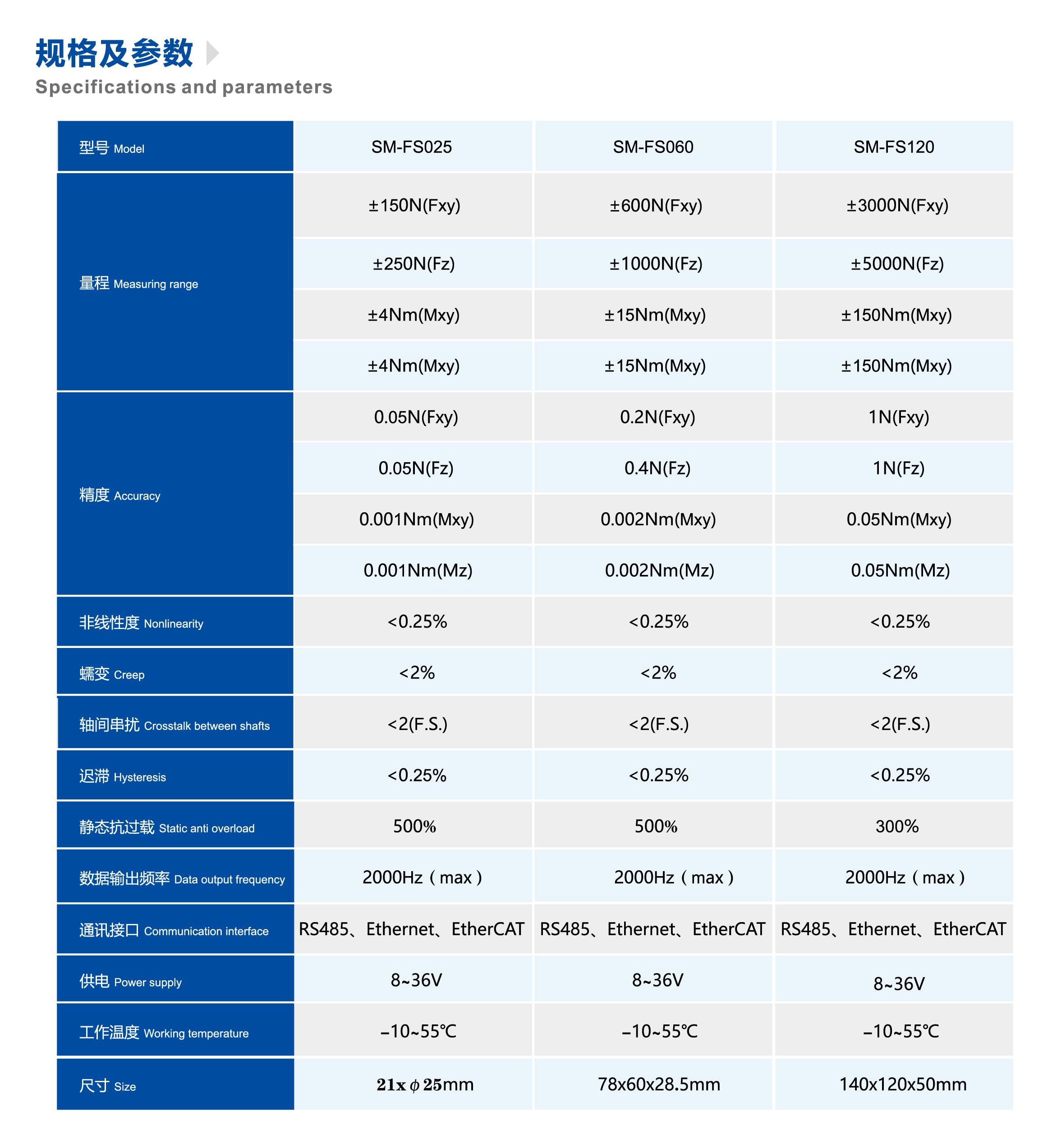 ?控傳感器可實(shí)時(shí)測(cè)量XYZ三個(gè)?向所受到的力和力矩。高精度應(yīng)變計(jì)及結(jié)構(gòu)設(shè)計(jì)實(shí)現(xiàn)了更高的信噪比和靈敏度,內(nèi)置溫度補(bǔ)償算法大大降低了由溫度變化導(dǎo)致的溫度漂移。六維力傳感器應(yīng)用于工業(yè)機(jī)器人、協(xié)作機(jī)器人、外骨骼機(jī)器?、醫(yī)療康復(fù)機(jī)器人、柔性?shī)A爪和機(jī)器人關(guān)節(jié)、自動(dòng)化測(cè)量、控制及風(fēng)洞測(cè)試等。