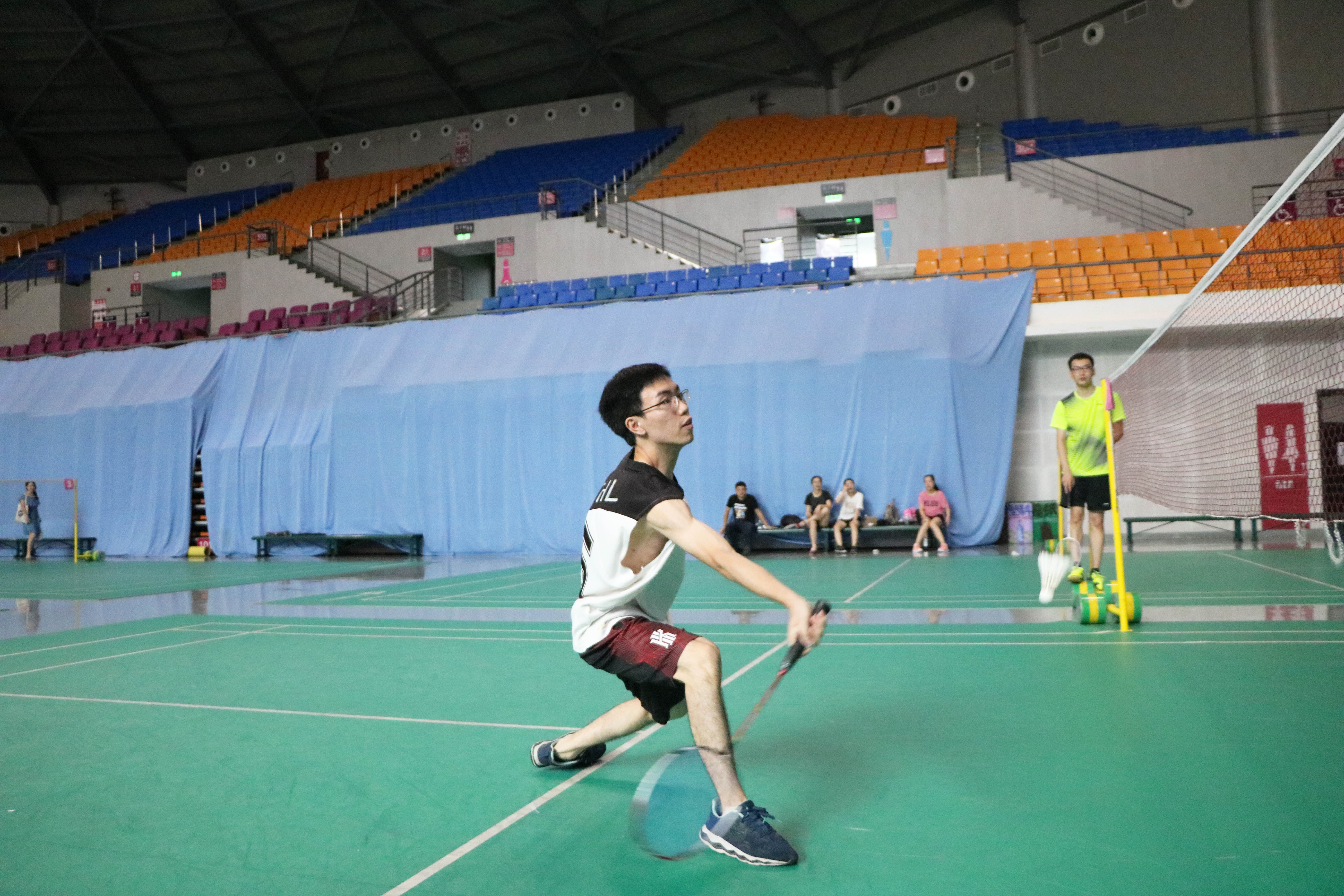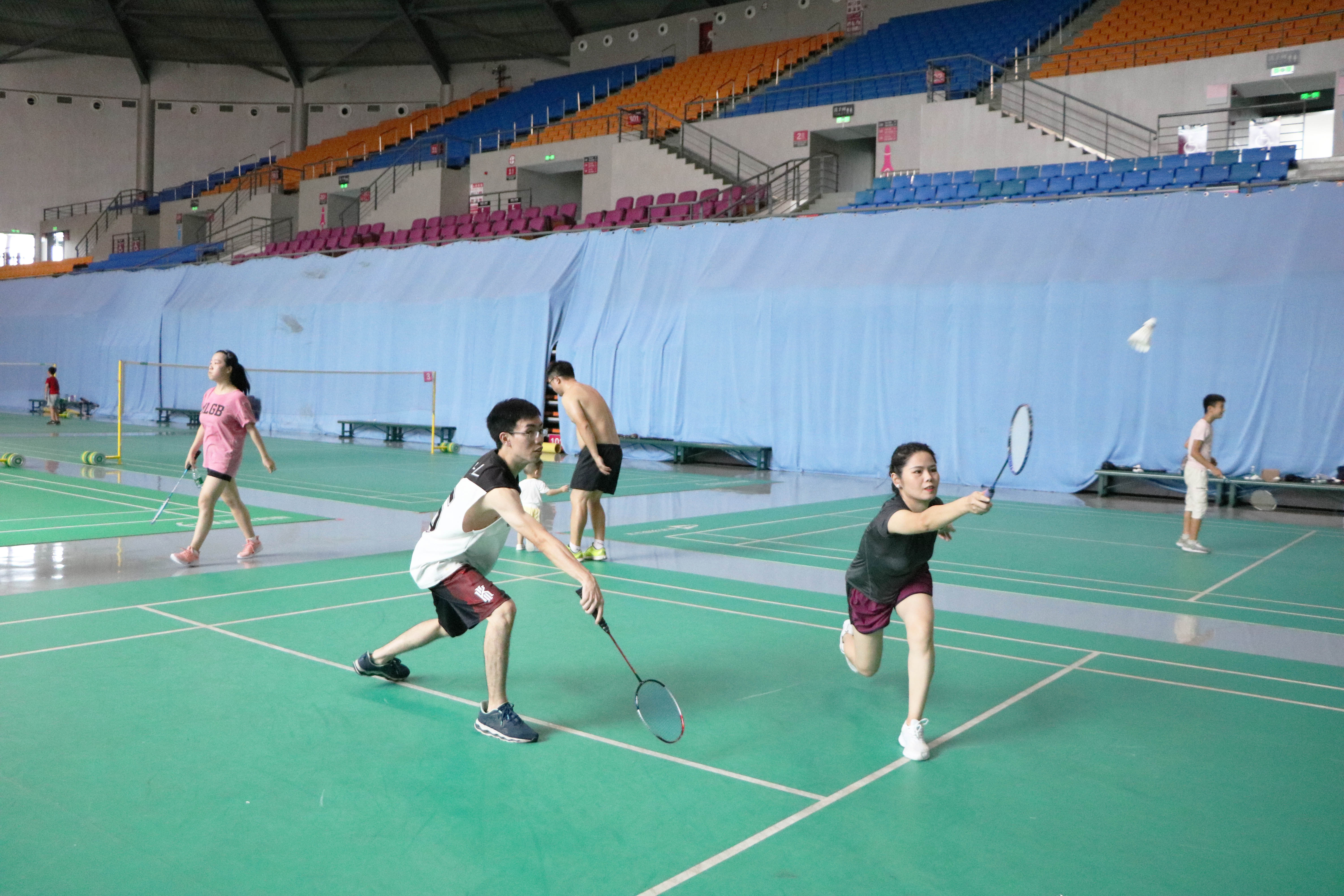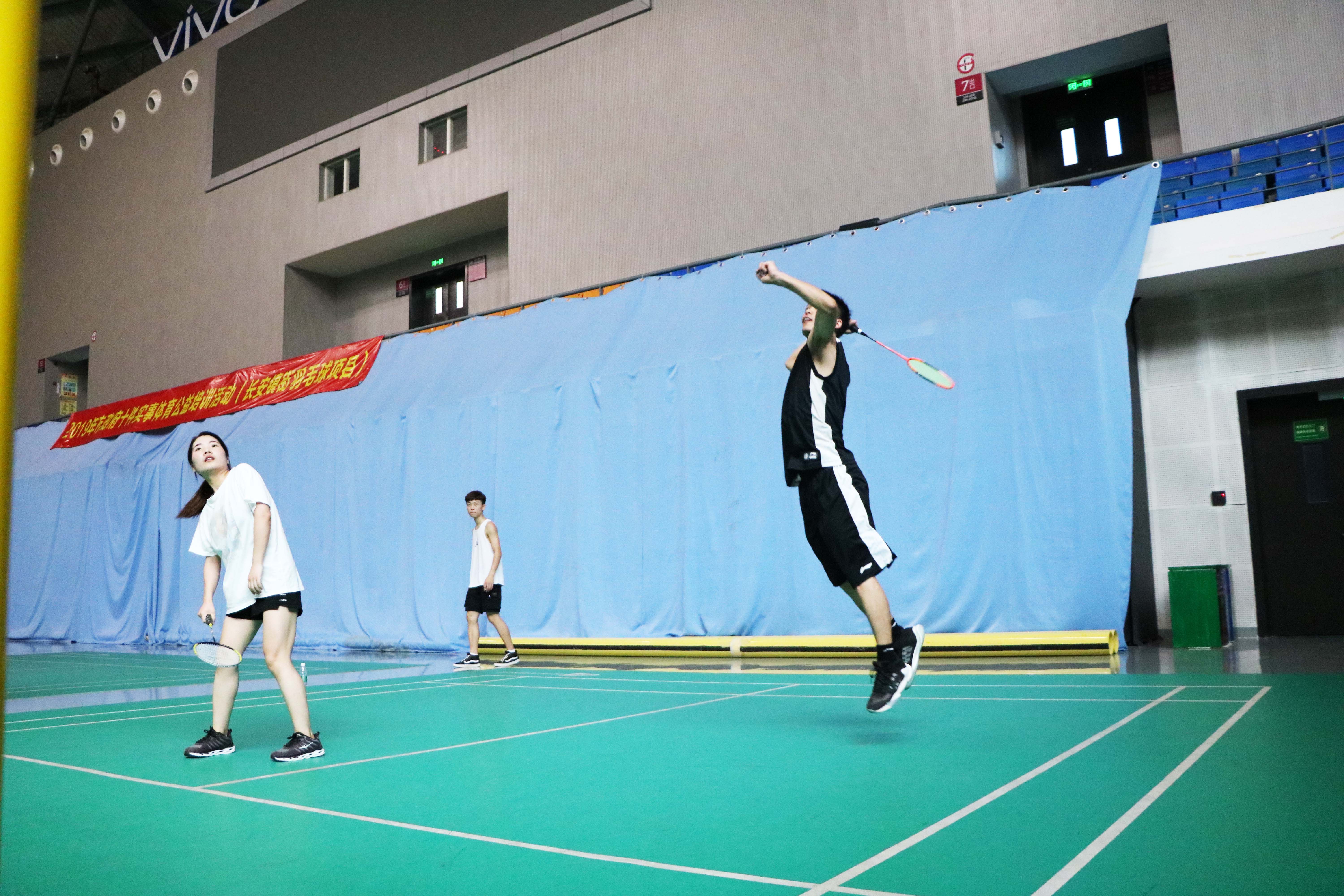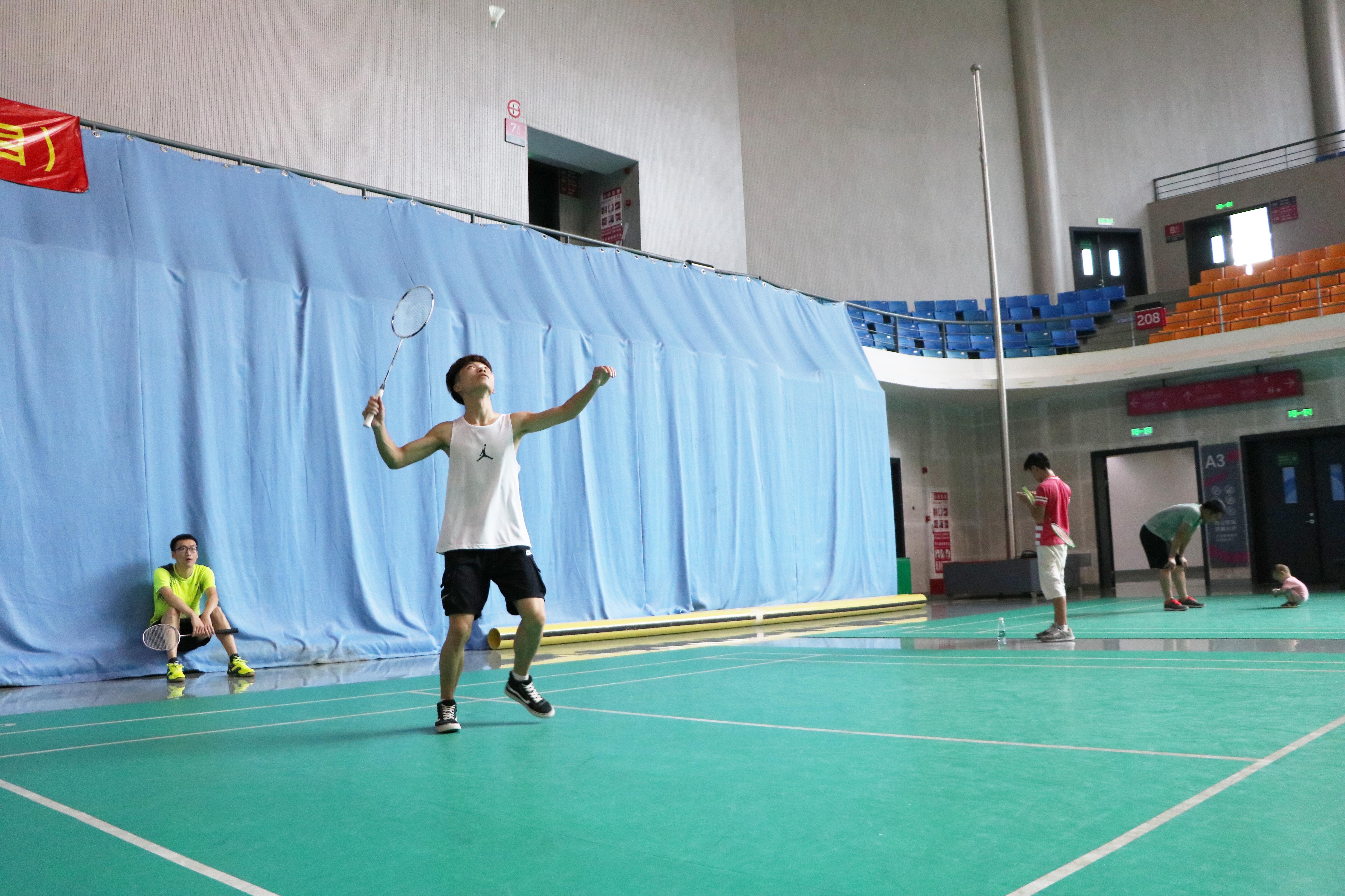 最后進(jìn)行的是羽毛球混雙比賽,羽毛球混雙參加的隊(duì)伍一共有六支。兩人一前一后,換發(fā)接球?;祀p比賽很考驗(yàn)兩個(gè)人配合的靈活性和默契程度。