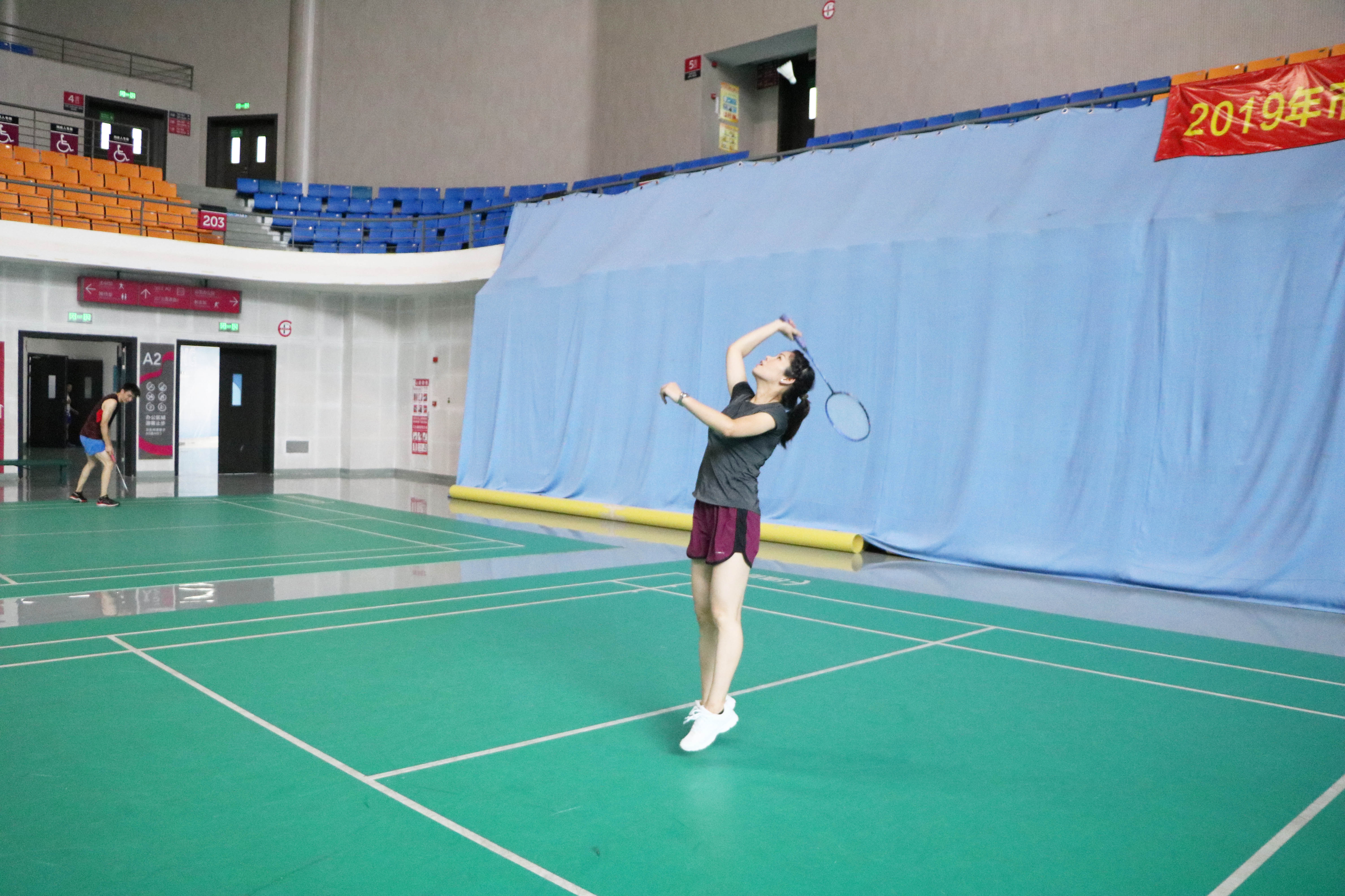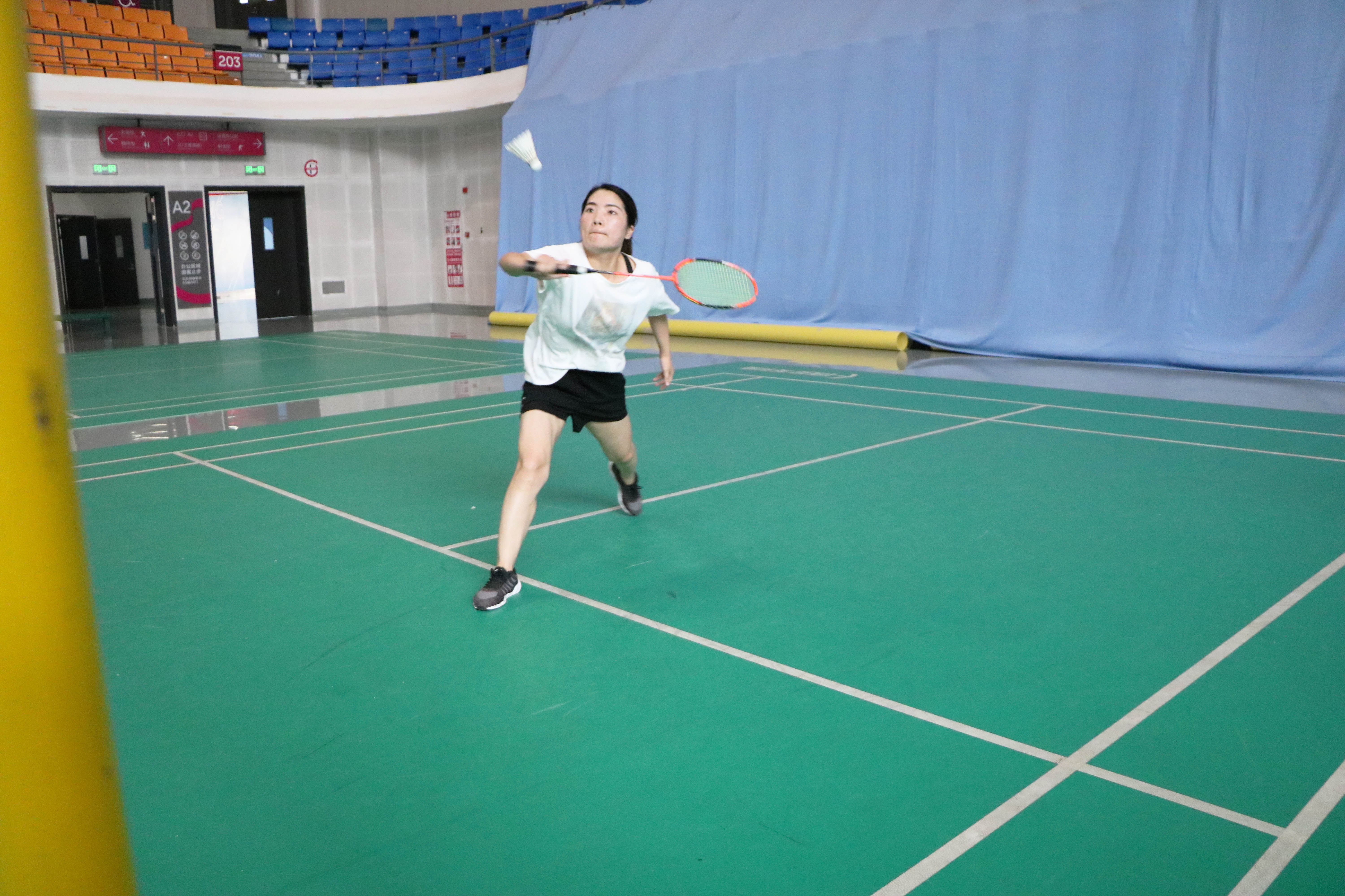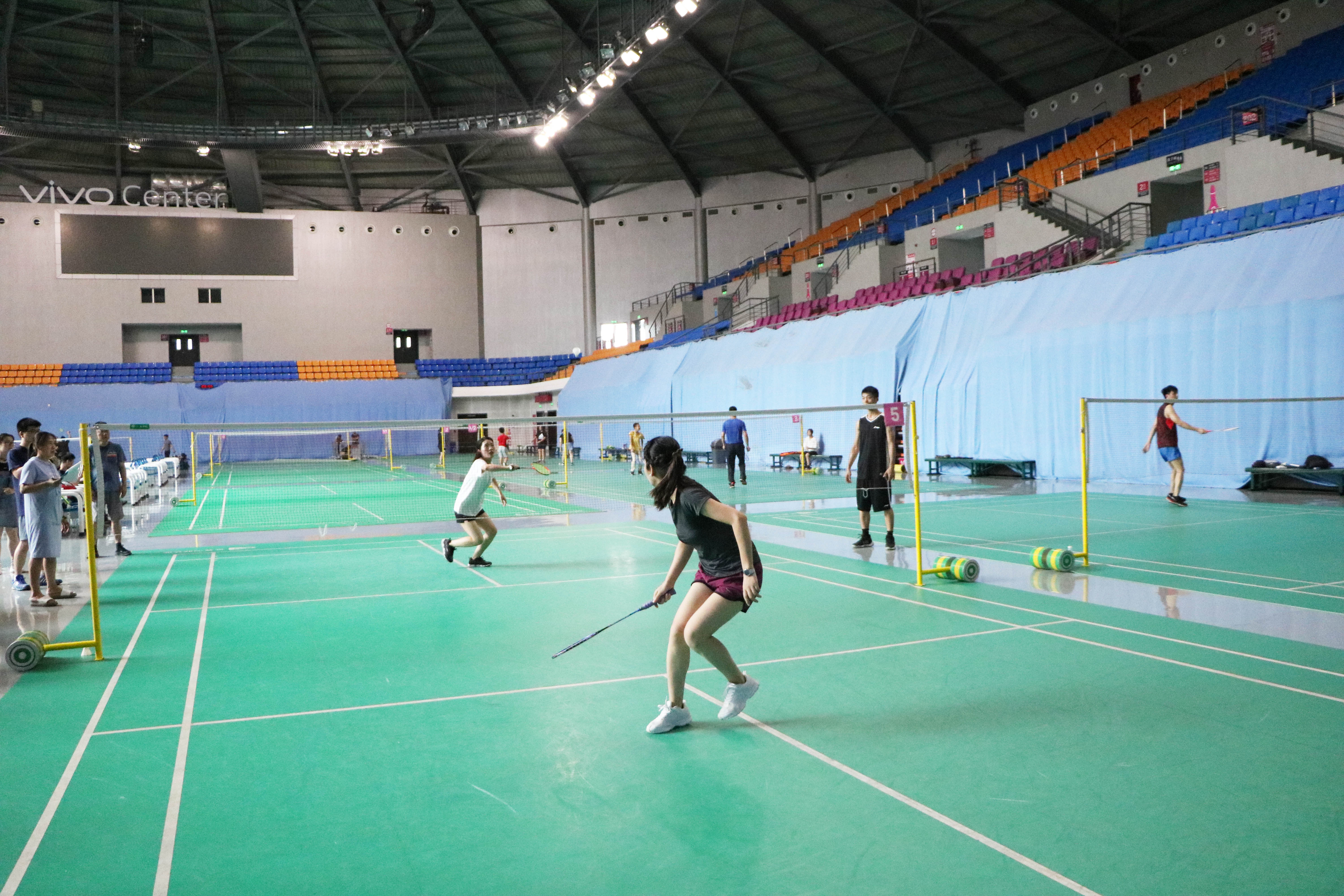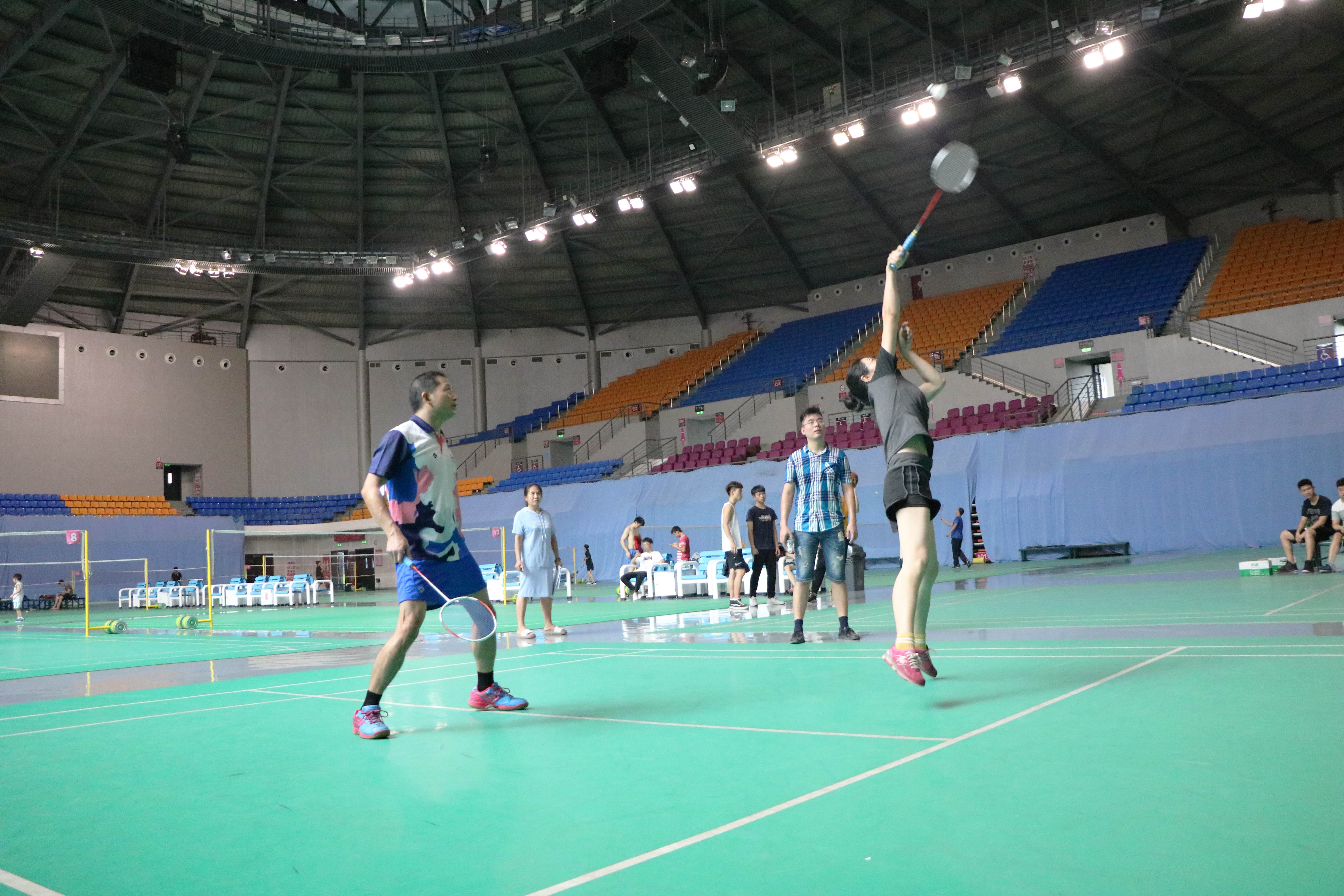 最后進(jìn)行的是羽毛球混雙比賽,羽毛球混雙參加的隊(duì)伍一共有六支。兩人一前一后,換發(fā)接球?;祀p比賽很考驗(yàn)兩個(gè)人配合的靈活性和默契程度。