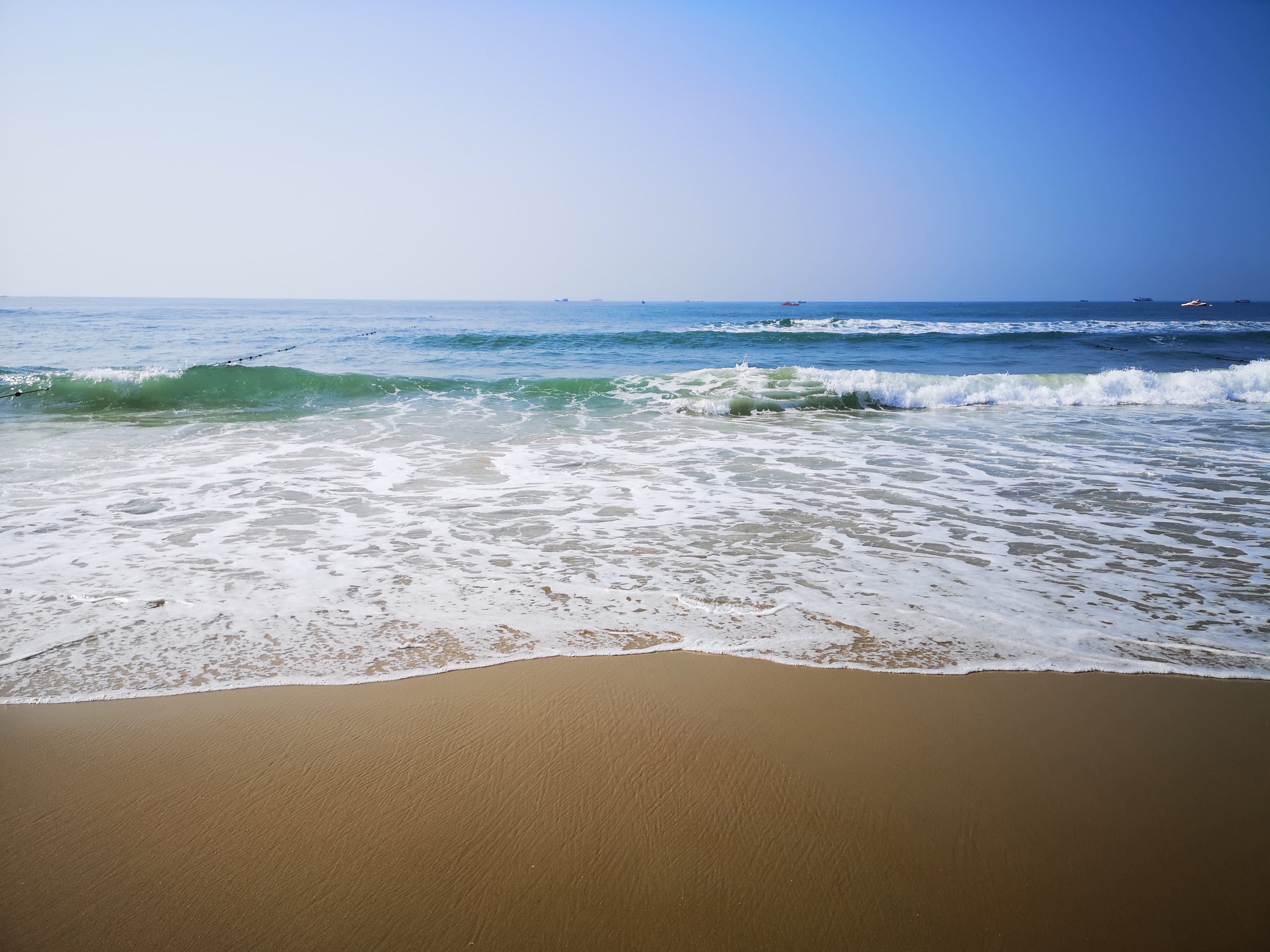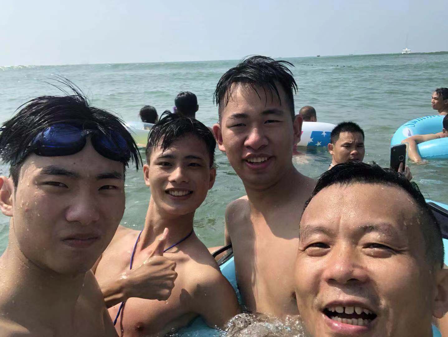 9月7日早,大家吃完早餐就一同前往大角灣沙灘浴場(chǎng)去接受陽(yáng)光、大海的洗禮,這里還有刺激的水上滑梯項(xiàng)目,也可以沖到海里感受海浪的沖擊,在海里海水撲打到臉上也會(huì)感受到海水的咸味。