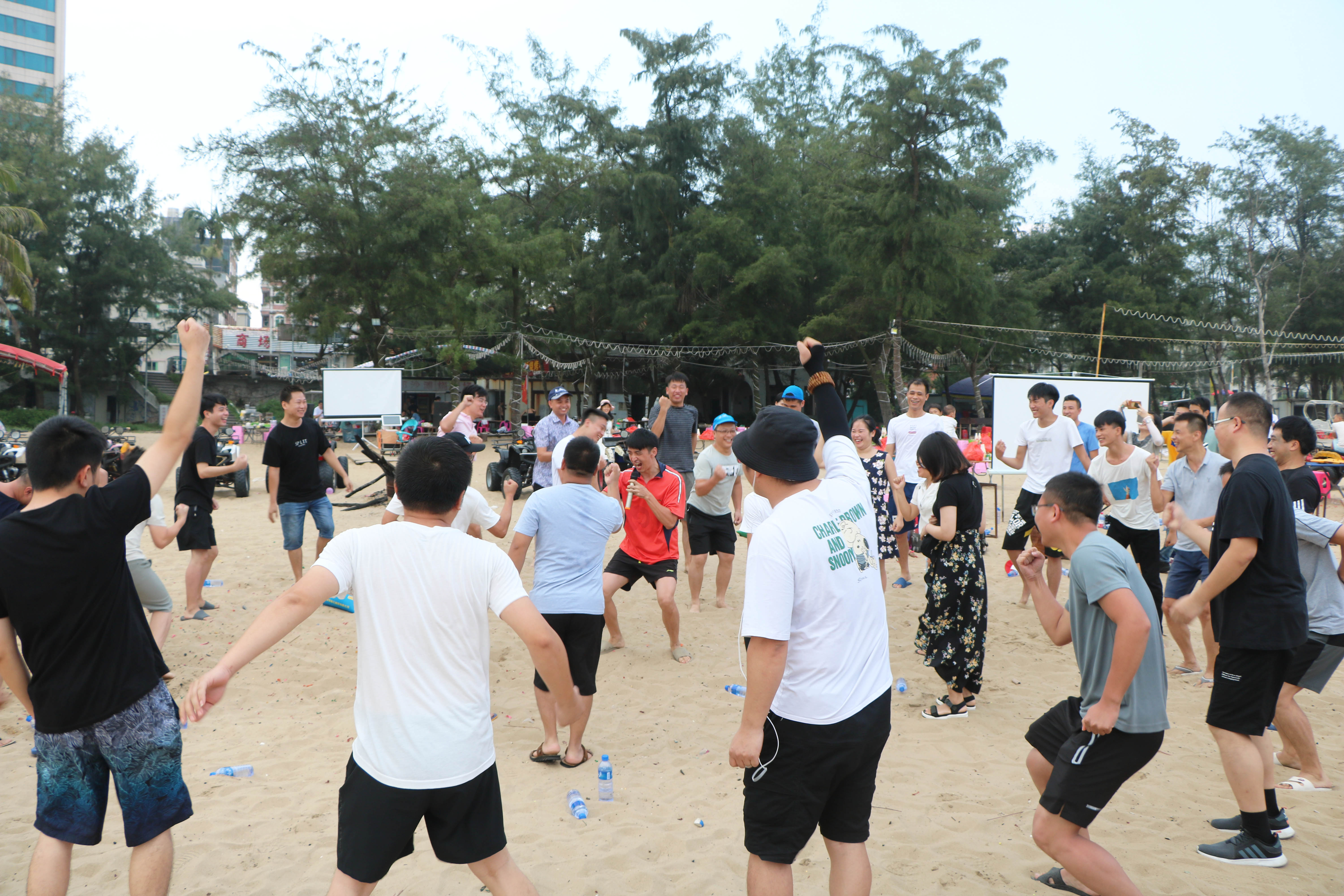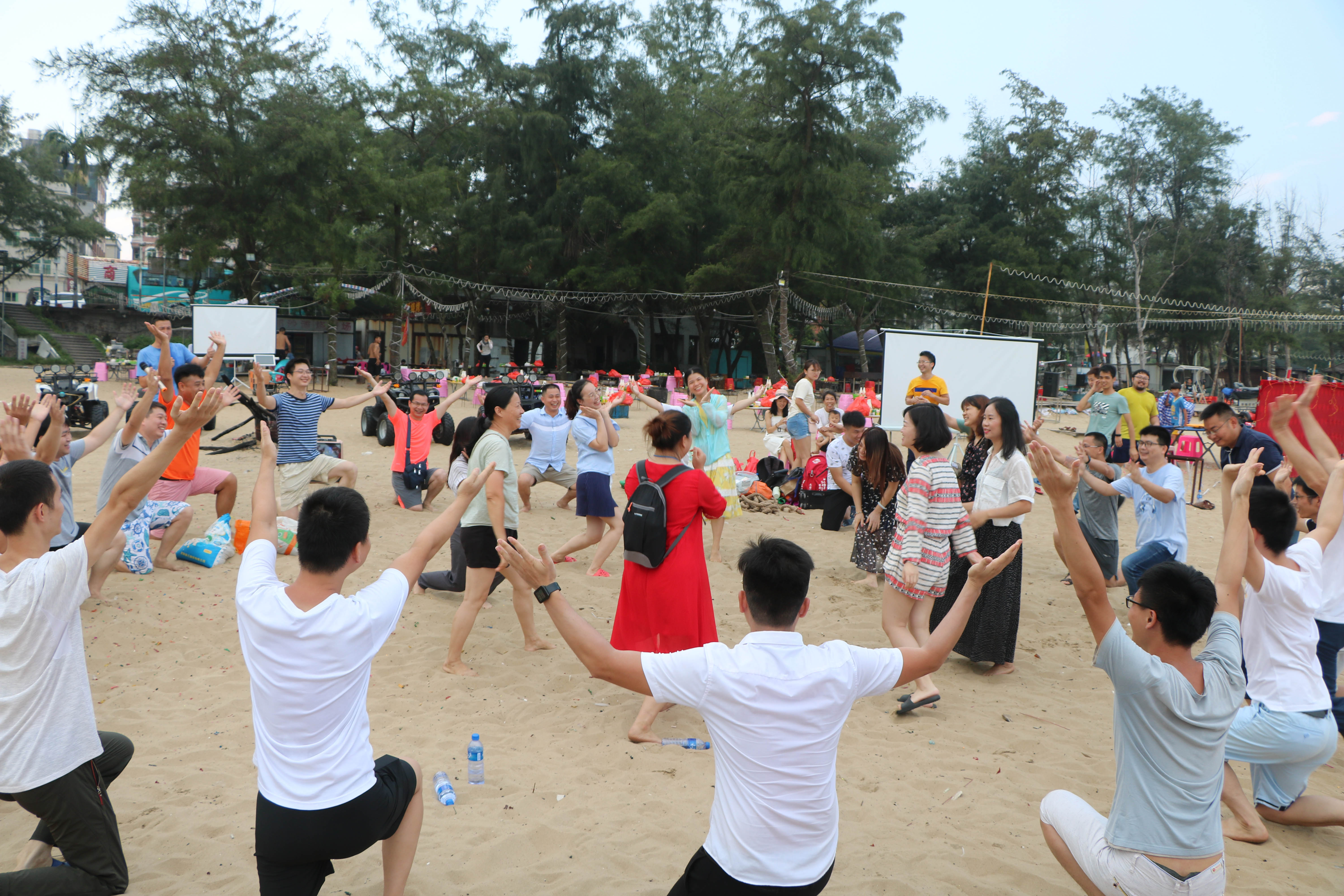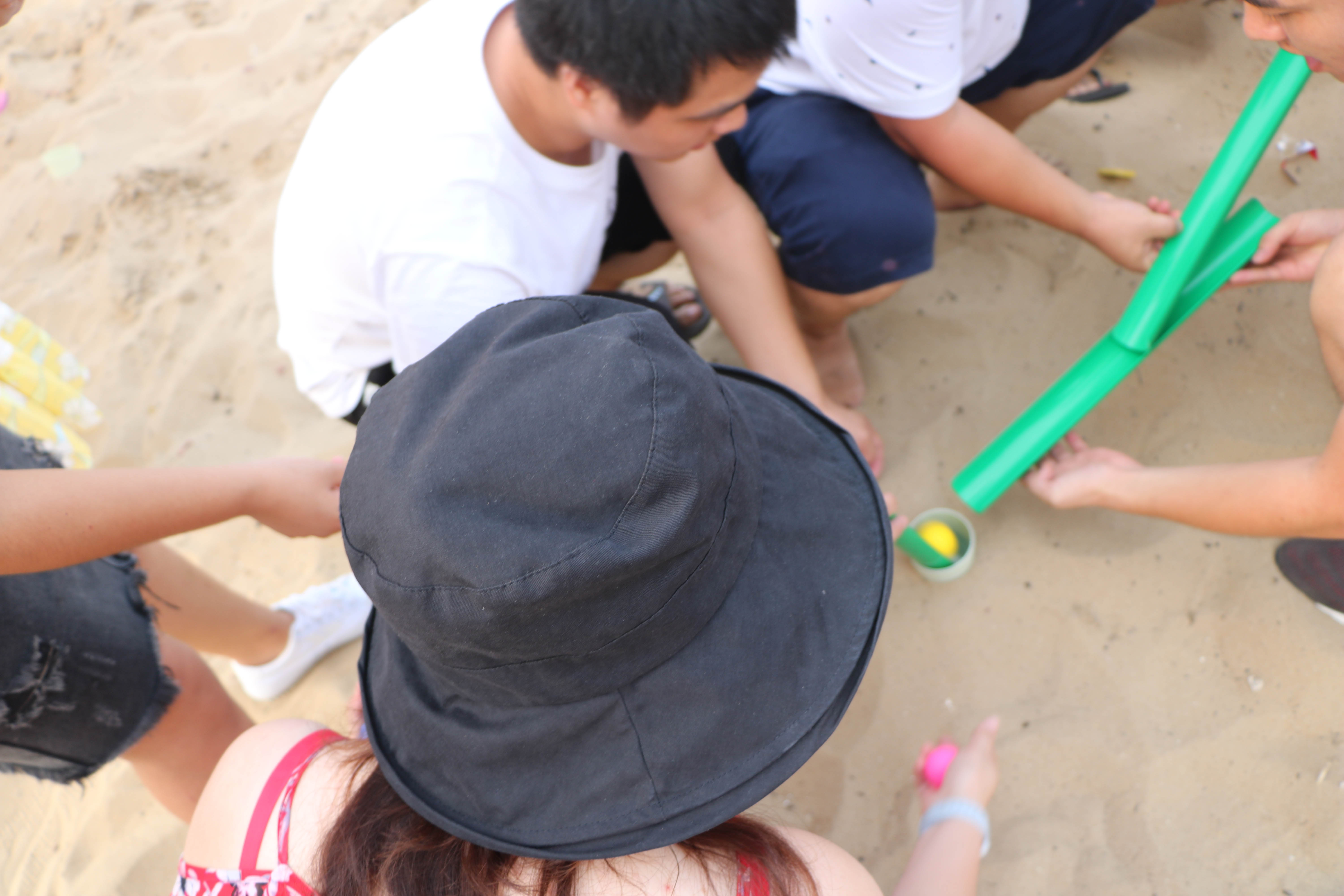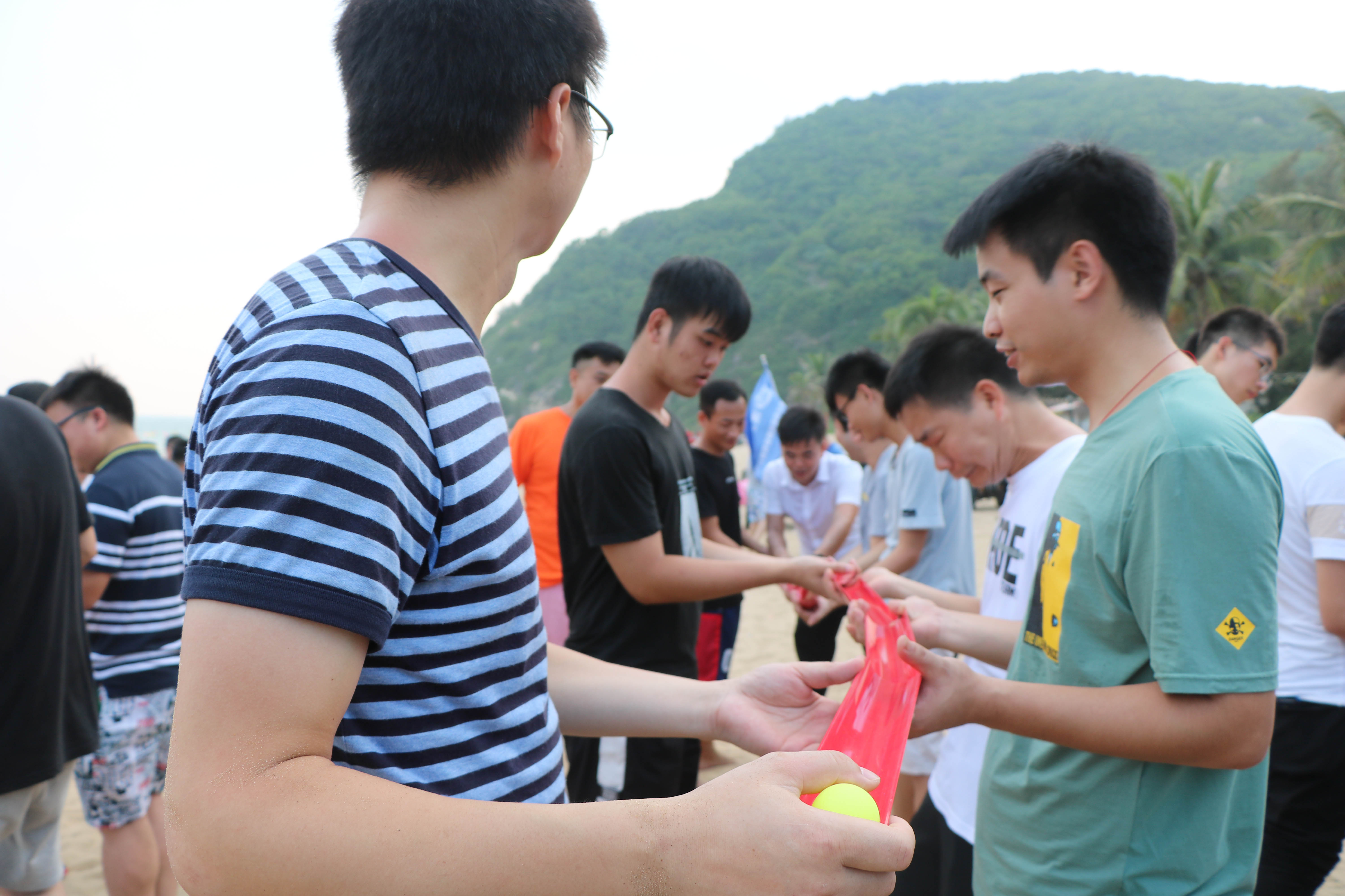 下午大家集合前往沙灘上展開(kāi)激烈的趣味比賽,大家分為4個(gè)小隊(duì),進(jìn)行對(duì)抗,第一個(gè)比賽“竹行千里”,這個(gè)項(xiàng)目非??简?yàn)每個(gè)人的配合默契程度,要用接力的形式讓小球在管子上運(yùn)動(dòng)并且運(yùn)到終點(diǎn),每個(gè)隊(duì)伍為了勝利都用了十分的認(rèn)真功力。